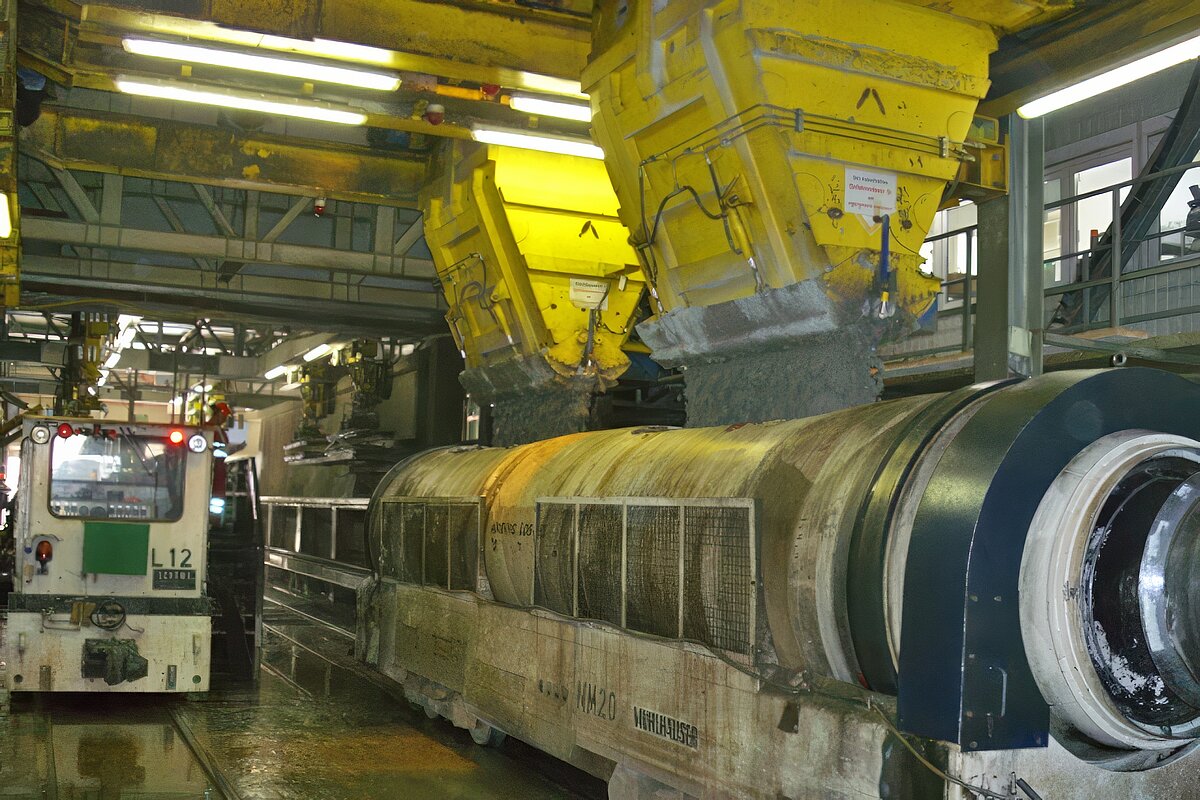 für die vollautomatische Betonverladung in die Betonzüge zur Versorgung der Tunnelbohrmaschine.