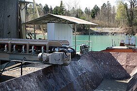 Für die Kiesgewinnung wurde bei der Firma Wilhelm & Mayer ein über 40-jähriger Schwimmbagger mit einer neuen Steuerung und mit einem neuen Leistungsteil ausgerüstet.